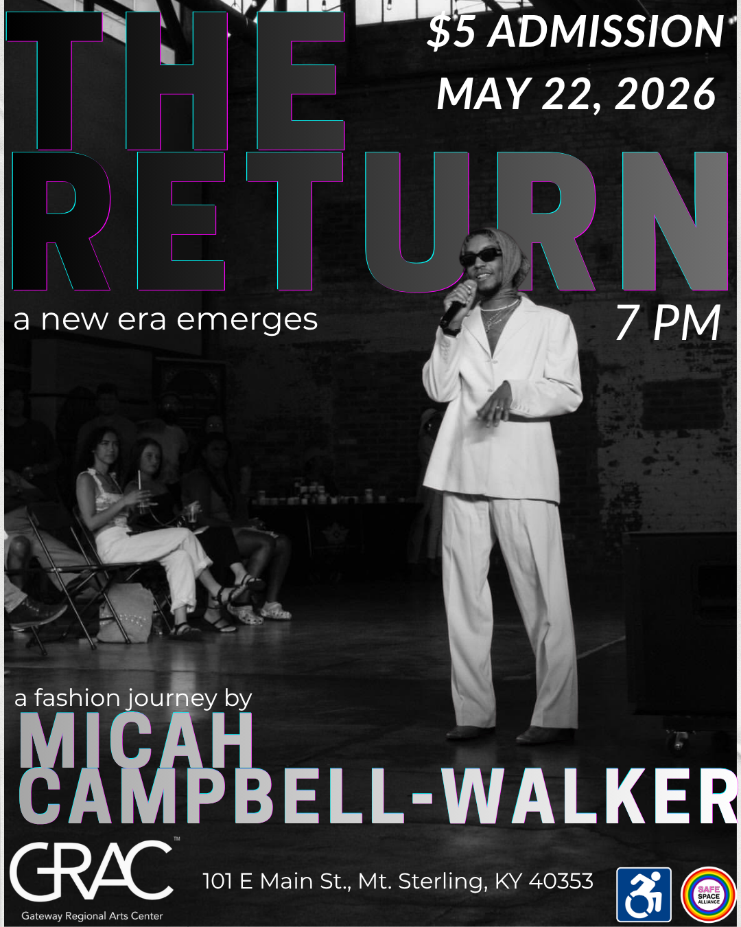 Step into The Return, an electrifying fashion experience where creativity, identity, and bold expression take center stage. Join us for a powerful showcase by Micah Campbell-Walker as a new era of style and storytelling emerges right here at GRAC.
