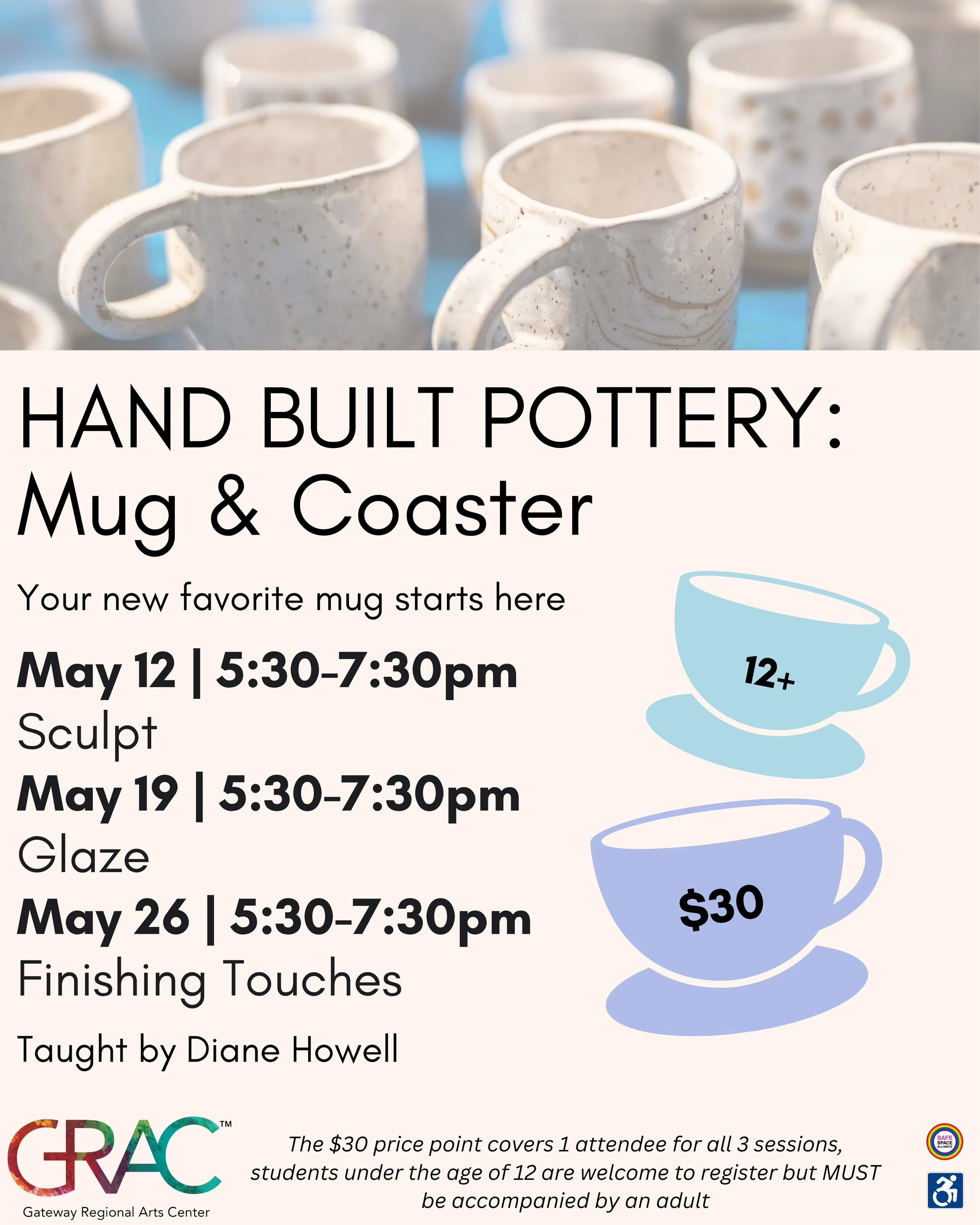 Get your hands in the clay and create something you’ll actually use every day. In this three-session class, you’ll design and hand-build your own mug and matching coaster from start to finish. We’ll walk you through shaping, glazing, and adding those final touches so your piece is both functional and uniquely yours. No experience needed, just come ready to get a little messy and leave with a mug you’ll be proud of.