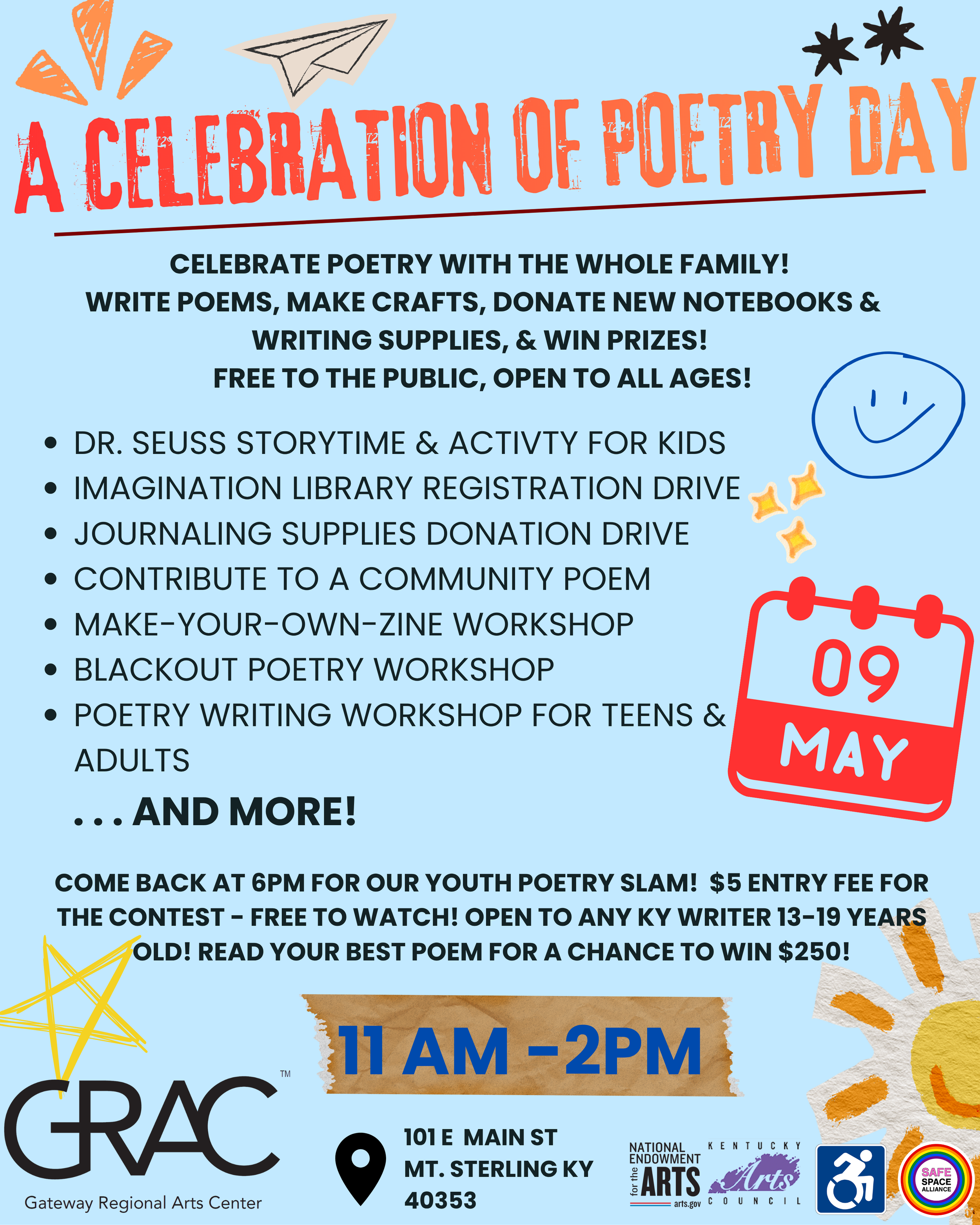 Celebrate creativity, community, and the power of words at our Celebration of Poetry Day! This free, family-friendly event invites all ages to explore poetry through hands-on activities like writing poems, crafting zines, blackout poetry, and contributing to a community poem.