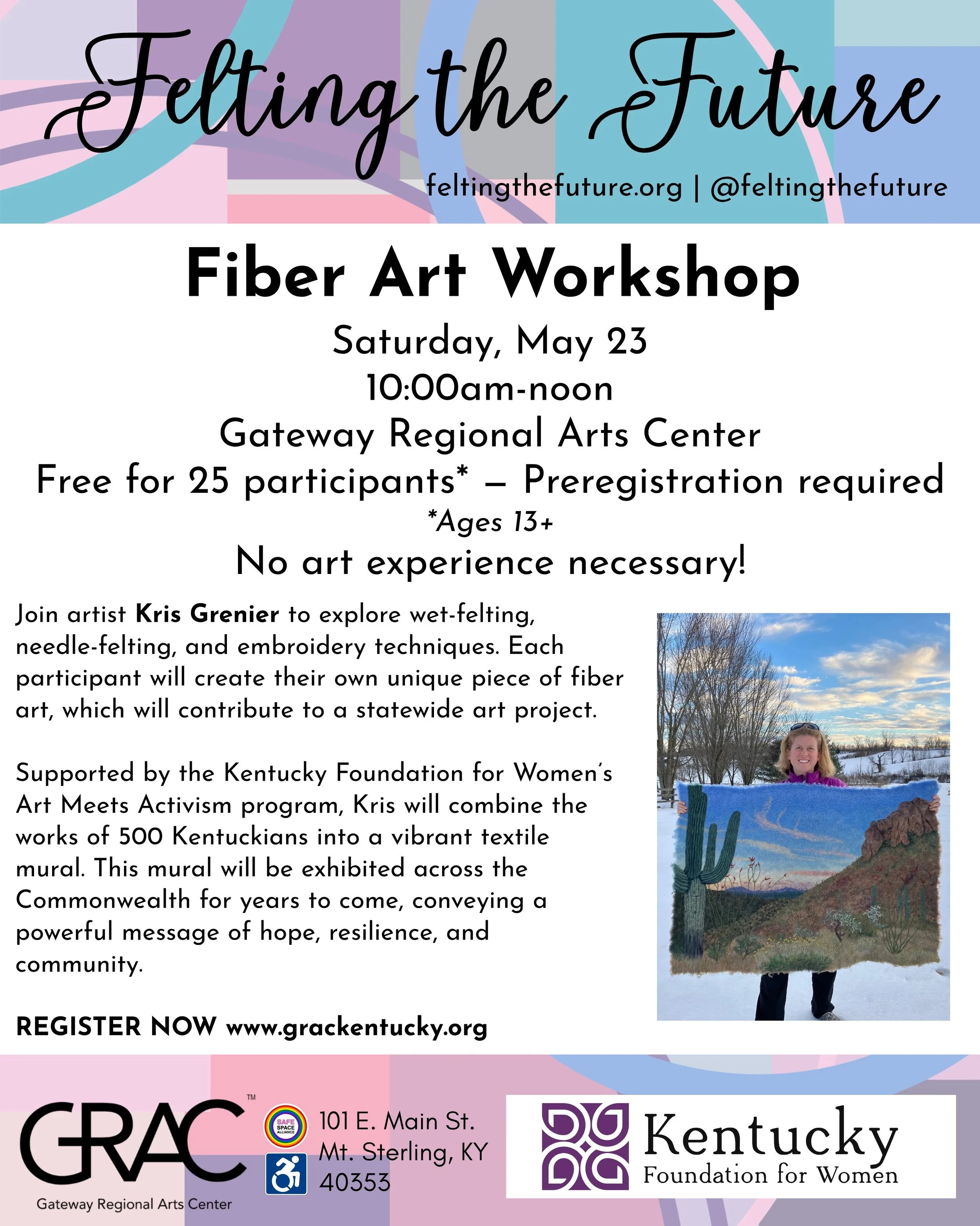 Each participant will create their own unique piece of fiber art, contributing to a larger statewide project that will bring together the work of 500 Kentuckians into a vibrant textile mural. This collaborative piece will travel across the Commonwealth, sharing a powerful message of hope, resilience, and community.